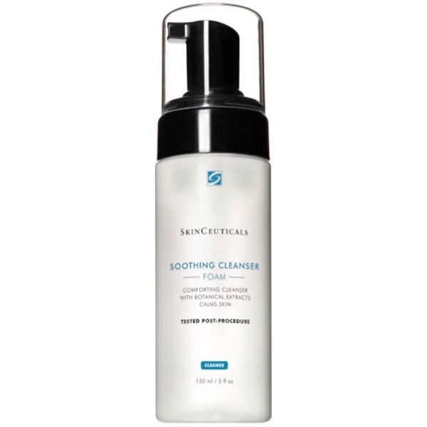Soothing Cleanser is een krachtig reinigend schuim geformuleerd met een rijke oppervlakteactieve stof uit amiliet en een concentratie van 22% die sorbitol, glycerine, orchidee-extract en komkommerextract combineert om onzuiverheden voorzichtig te verwijderen en de gevoelige, gecompromitteerde huid of huid na de ingreep te kalmeren en te troosten. Deze zeepvrije reiniger geeft een dicht reinigingsschuim af dat bij contact verandert in een geruststellende emulsie voor een milde maar effectieve reiniging. Getest na de procedure.